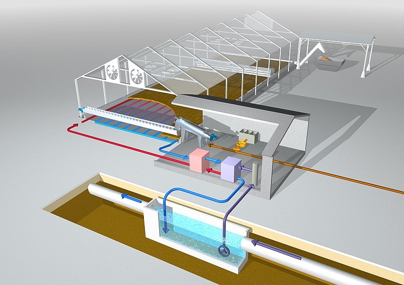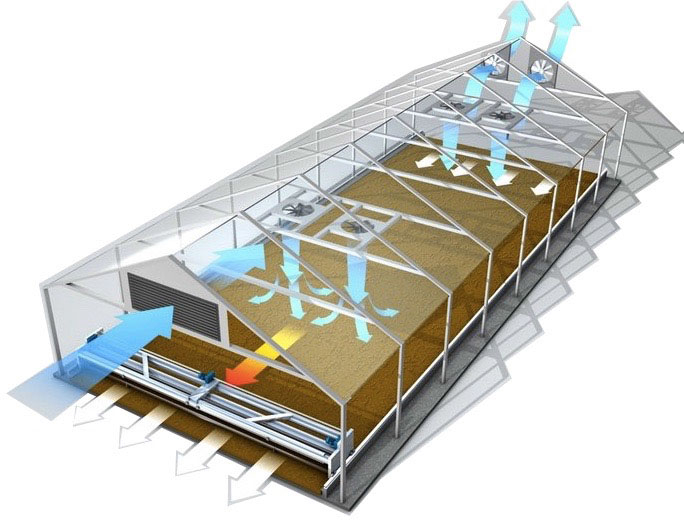Додаткове тепло зазвичай використовують у СС шляхом організації в «теплицях» теплої підлоги (рис. 4) – так осад сушиться з обох сторін і час сушіння зменшується вдвічі.
