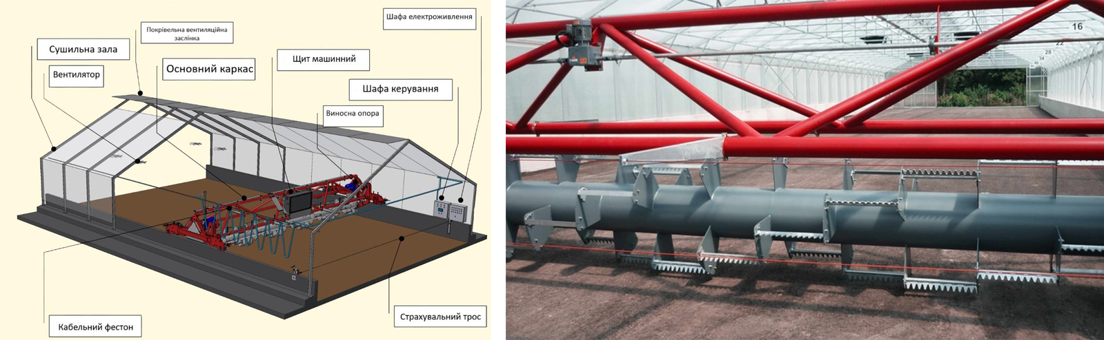 Процес сушіння осаду відбувається за температури 50 – 70°C, якої досягають завдяки сонячній енергії та системі керування теплим і вологим повітрям у середині «теплиці» (рис. 1).