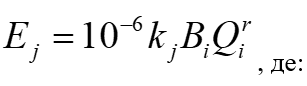 Ej – валовий викид j-ї забруднювальної речовини (у цьому випадку діоксиду вуглецю) під час спалювання i-го палива за звітний період, т;