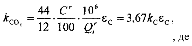 ɛС – ступінь окислення вуглецю палива (додаток А до «Збірника»); для природного газу рекомендоване значення – 0,995, для мазуту – 0,994;