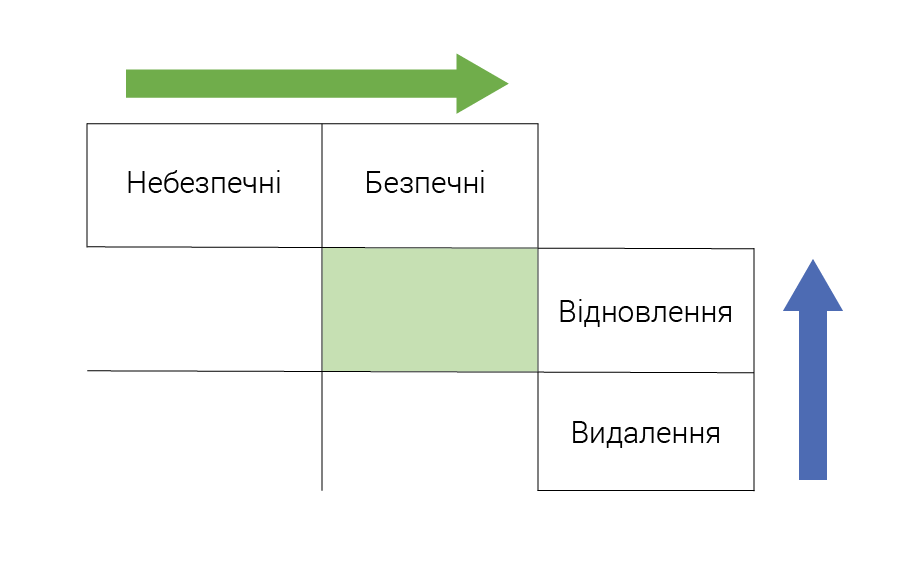 | Видалення | Якщо не знайшли жодних можливостей використання через технологічні або економічні причини | Видалення |