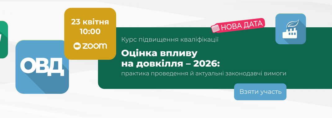 Нагадуємо, що незабаром під патронатом професійного журналу «ECOBUSINESS. Екологія підприємства» й системи «Онлайн-консультант еколога підприємства» відбудуться курси підвищення кваліфікації для інженерів і керівників відділів охорони навколишнього середовища, а також практичний триденний онлайн-курс: